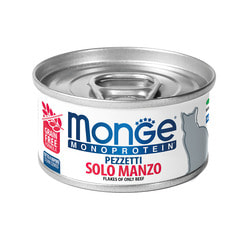Повседневные корма Monge Влажный корм Monge Cat Monoprotein для кошек, мясные хлопья из мяса говядины, консервы 80 г