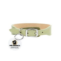 Ошейники, шлейки, намордники Mr.Kranch Ошейник Mr.Kranch для собак из натуральной кожи с QR-адресником, 22-26см, нежно-зеленый