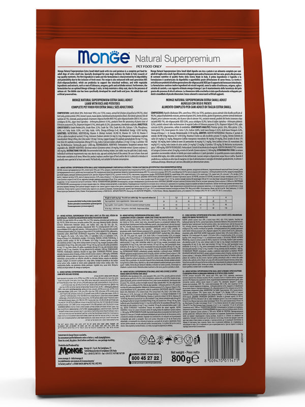 Monge (Монж) Dog Speciality Line Extra Small сухой корм из мяса ягнёнка для взрослых собак миниатюрных пород 800 г.