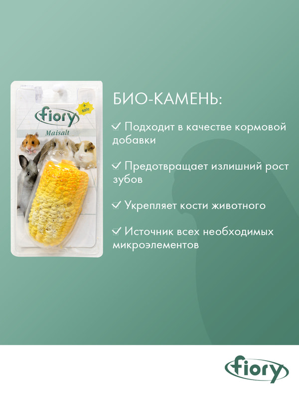 FIORY био-камень для грызунов в форме кукурузы.Минеральный био-камень – важная добавка для всех грызунов! Минеральный био-камень помогает питомцам равномерно стачивать постоянно растущие зубы. В состав био-камня входят 12 различных минералов, которые способствуют укреплению костей и благотворно влияют на организм питомца в целом , такие как кальций, фосфор, натрий, железо, цинк, магний, селен и др. Селен - редкий и ценный антиоксидант, который борется со свободными радикалами, поддерживая антиоксидантную защиту, а кристаллы соли в составе повышают вкусовую привлекательность. Удобная форма кукурузы не только сделает процесс стачивания зубов простым и удобным для грызуна, но и украсит клетку вашего любимца. Степень твердости 50 единиц (параметр SHORE C).