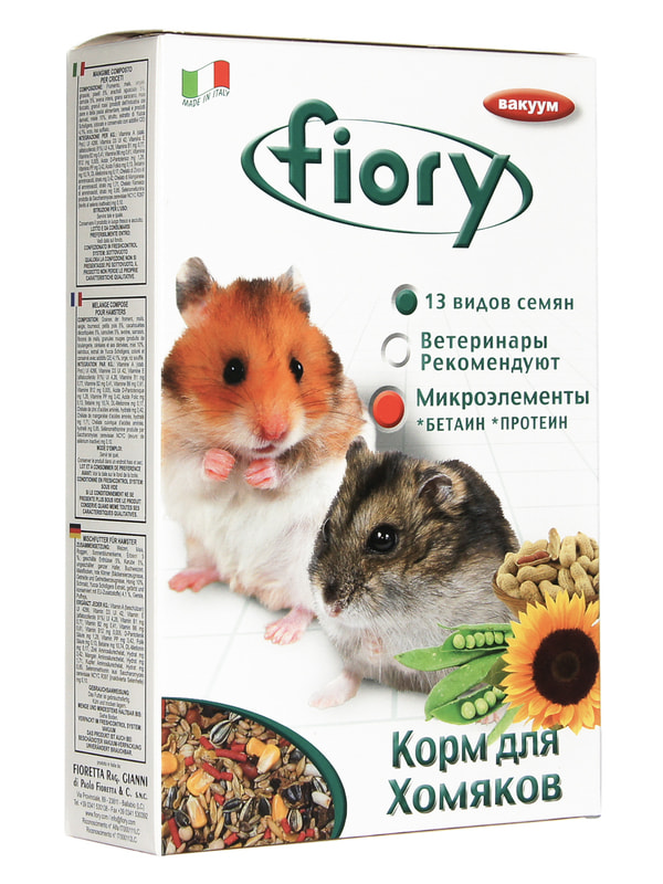 Смесь FIORY Hamsters для хомяков - это полноценное питание для вашего питомца, обеспечивающее хорошее здоровье, блестящую шерстку, оптимальное пищеварение и крепкие зубы и кости!