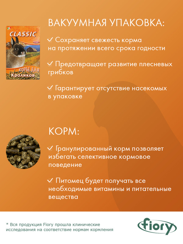FIORY гранулы для кроликов Classic 680 гКлассический корм для декоративных кроликов в гранулах. Корм упакован в вакуум.