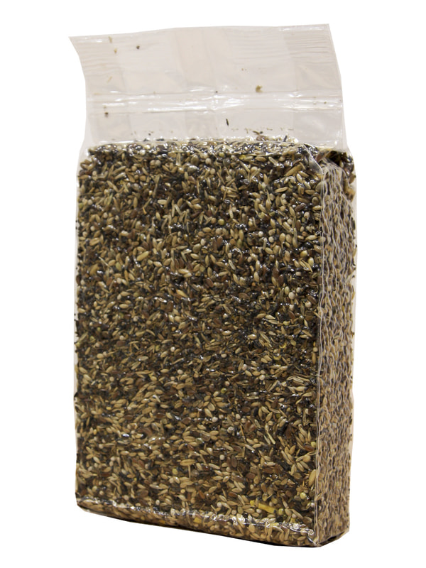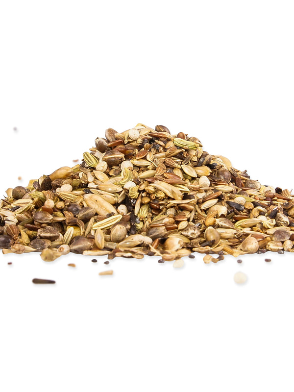 Смесь содержит двенадцать различных ингредиентов, имеющих такую же питательную ценность, как и в природе. Добавление 10% испанского артишока вместе с 5% периллы делают эту смесь наилучшим продуктом, который можно найти на рынке. Она также содержит семена мака, моркови, цикория, аниса, масличного нуга и злаковых. Птицам очень нравятся эти семена, но в то же время они редко находят их в природе, что делает эту смесь уникальной и очень желанной для птиц.
