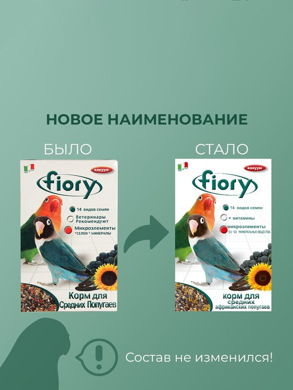 Повседневные корма Fiory FIORY корм для средних попугаев Parrocchetti African 800 г