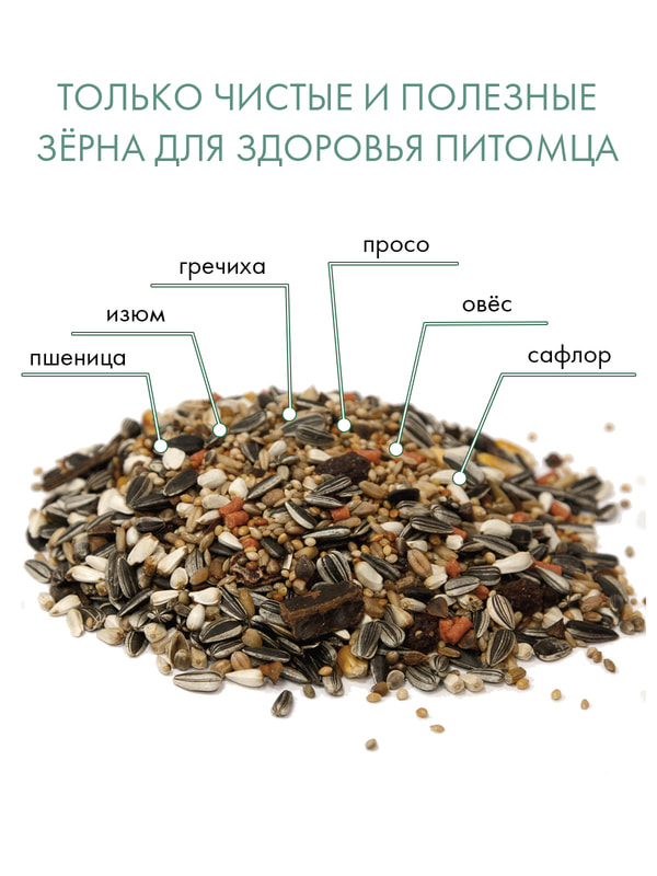 без ограниченийИнгредиенты: Семена: подсолнечника полосатые, просо желтое, сафлор, просо белое, канареечник, пшеница, просо красное, кукуруза, гречиха, очищенный овес, гранулы (пекарные продукты, злаки и зерновые продукты, мёд 10%, масла, экстракт юкки Шидигера, красители и консерванты, одобренные ЕС) 4,1%, изюм 4,1%, бобы рожкового дерева, конопляное семя.