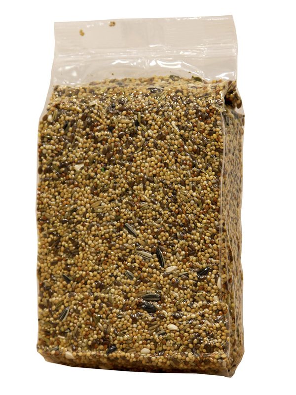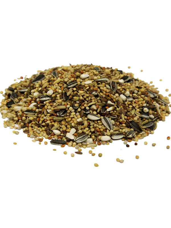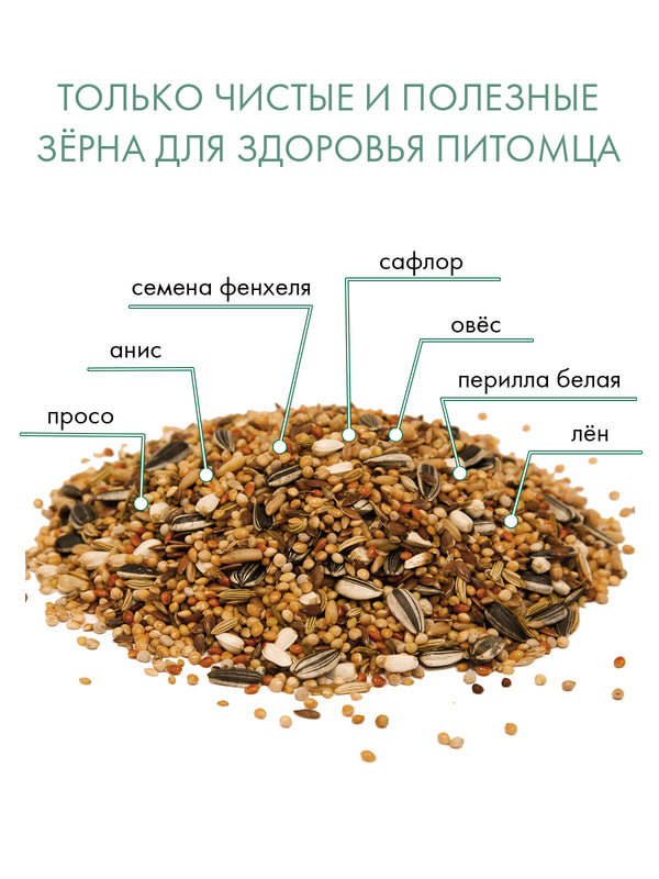 Семена: просо желтое, просо белое, овес очищенный, лён, просо обыкновенное, просо красное, канареечник, подсолнечник полосатый малый, сафлор, фенхель, анис, семена цветов, перилла белая.