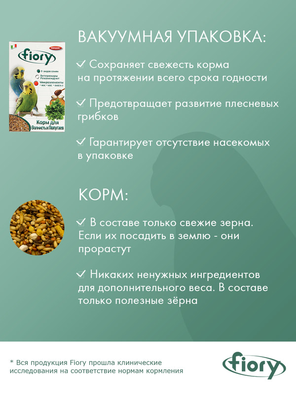 FIORY корм для волнистых попугаев Pappagallini 400 г Повседневный сбалансированный корм для волнистых попугаев.Корм содержит девять видов семян, обеспечивающих сбалансированный и разнообразный рацион для волнистых попугаев. Кроме обычных, общеизвестных семян, в корме используются редкие семена сафлора.Сафлор - маслянистые семена, которые облегчают запоры, а также улучшаю пигментацию оперения.Семена просо поддерживают организм в тонусе, выводят токсины, способствуют оптимальной работе различных систем организма.Корм для волнистых попугаев обогащён мёдом и растительными гранулами.Сделано в Италии.