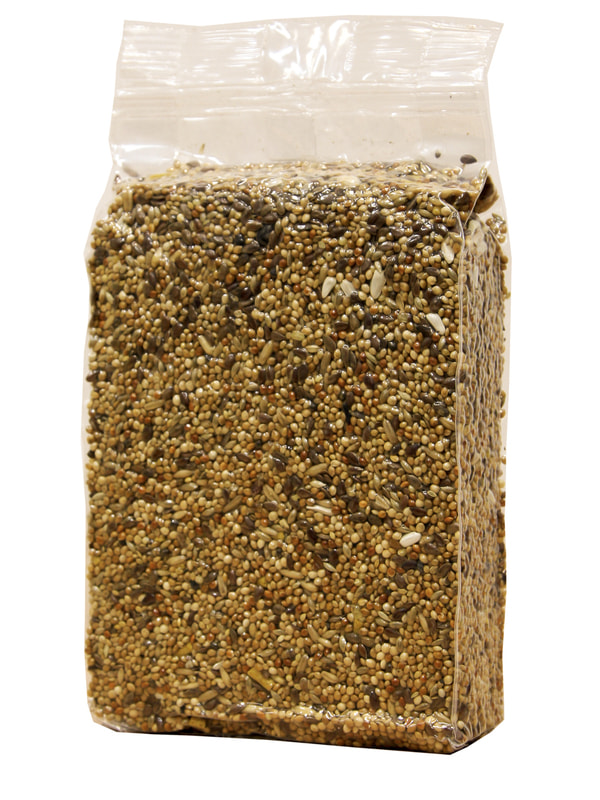 Ингредиенты: желтое просо, белое просо, очищенный овес, лён, просо обыкновенное, просо красное, канареечное семя, гранулы (пекарные продукты, злаки и зерновые продукты, мёд 10%, масла, экстракт Юкки Шидигера, натуральные красители и антиоксиданты, одобренные ЕС) 4,1%, сафлор.