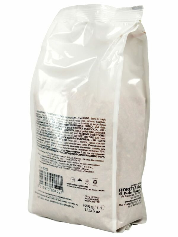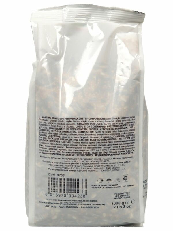Корм содержит различные семена, обеспечивающие сбалансированный и разнообразный рацион для волнистых попугаев.