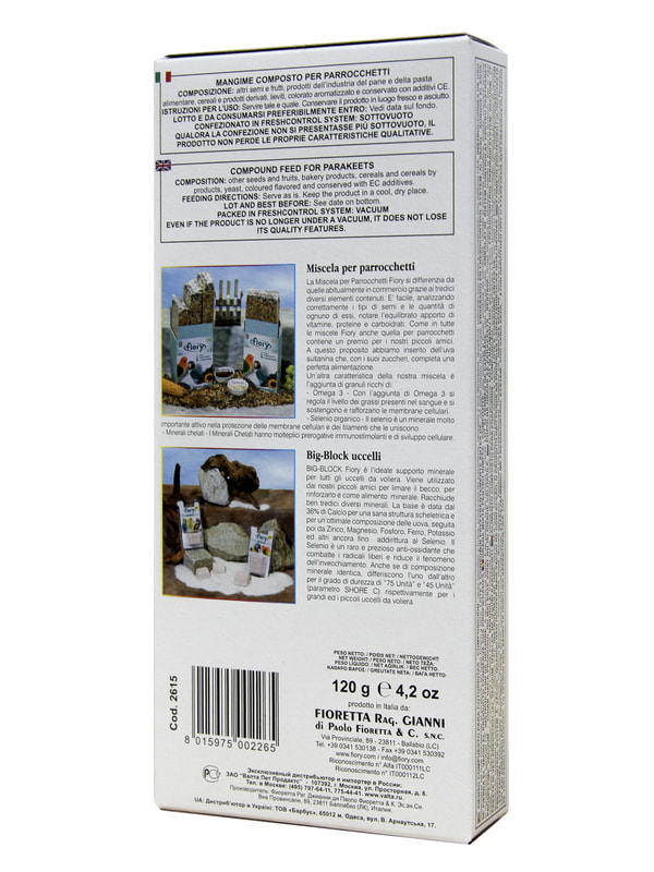 FIORY палочки для средних попугаев с овощами. Палочки с десятью различными элементами. Клейкий элемент особенно вкусен, позволяет птицам легко его клевать, не раскалывая их на части и не разбрасывая крошки по дну клетки. Поскольку продукт отличается высоким содержанием белка, им не следует злоупотреблять. Как и все подобного рода дополнительное питание, палочки считаются лакомством и являются добавкой к обычному рациону.