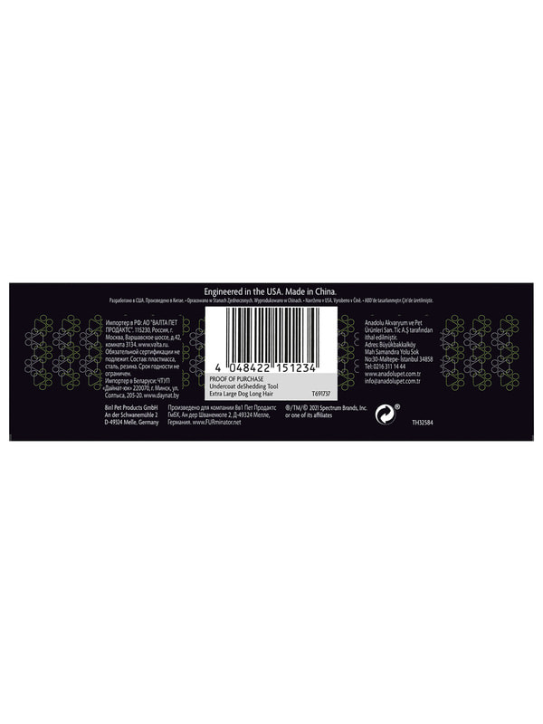 Инструмент FURminator (Фурминатор) XL 121 мм (длина рабочей поверхности).Отлично подойдет для гигантских собак с длинной шерстью. Уникальное лезвие захватывает и вытаскивает мертвые волоски подшерстка до их выпадения, сокращая линьку до 90%. Инструмент экономит ваше время, сохраняет здоровье кожи и шерсти, не повреждает остевой волос и предупреждает образование комков шерсти в желудке кошек. Вы забудете о выпавшей шерсти на полу, одежде и мебели. Кнопка самоочистки легко сбрасывает шерсть с инструмента.Защелкните ее для защиты в процессе хранения. Защитные края предупреждают давление на кожу.