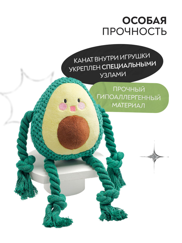 Игрушка Mr.Kranch для собак "Авокадо" плюшевая с канатиками и пищалкой.