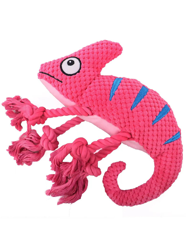 Для совместной игры Mr.Kranch Игрушка Mr.Kranch для собак "Хамелеон" плюшевая с канатиками и пищалкой 26 см розовая