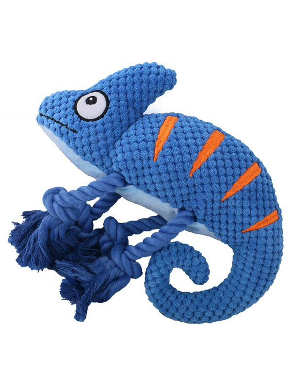 Для совместной игры Mr.Kranch Игрушка Mr.Kranch для собак "Хамелеон" плюшевая с канатиками и пищалкой 26 см синяя
