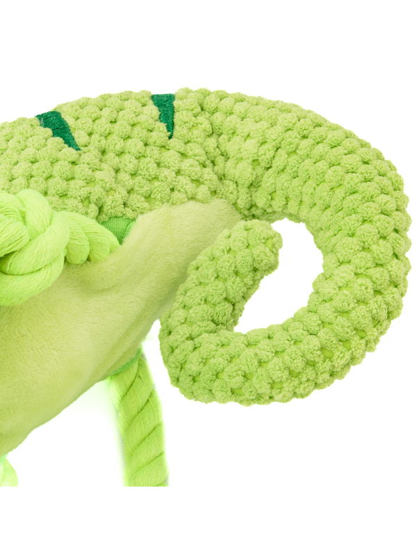 Для совместной игры Mr.Kranch Игрушка Mr.Kranch для собак "Хамелеон" плюшевая с канатиками и пищалкой 26 см зеленая