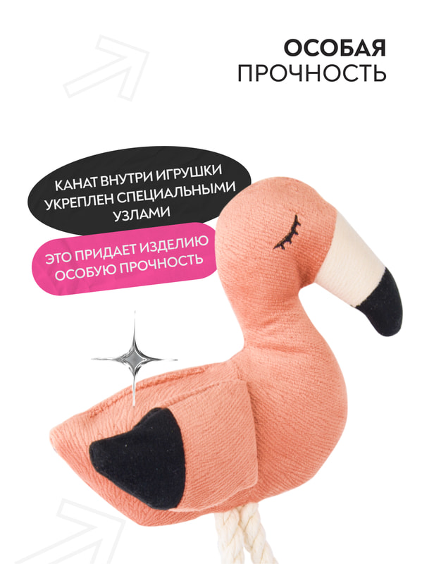 Игрушка Mr.Kranch для собак мелких и средних пород «Фламинго» с пищалкой и канатом.