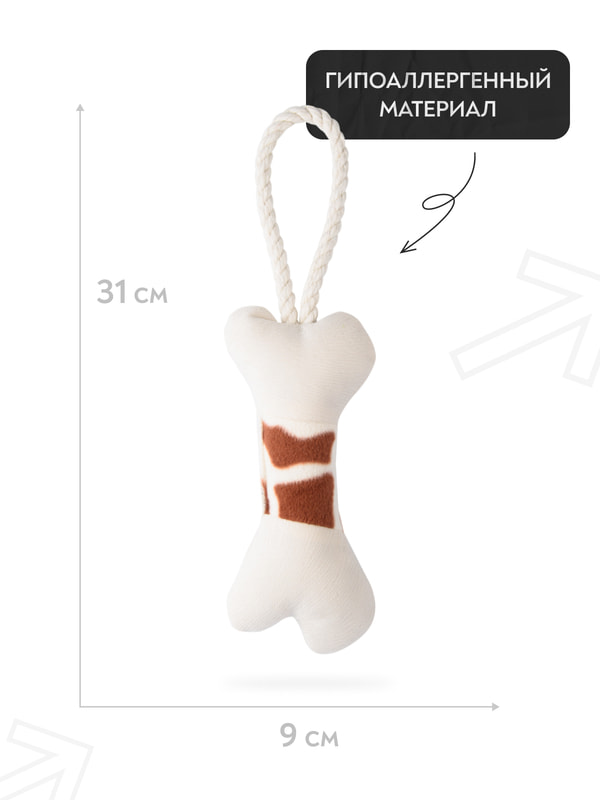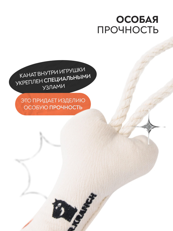 Для совместной игры Mr.Kranch Игрушка Mr.Kranch для собак мелких и средних пород Косточка с канатом 31х9х4см, бежево-пятнистая