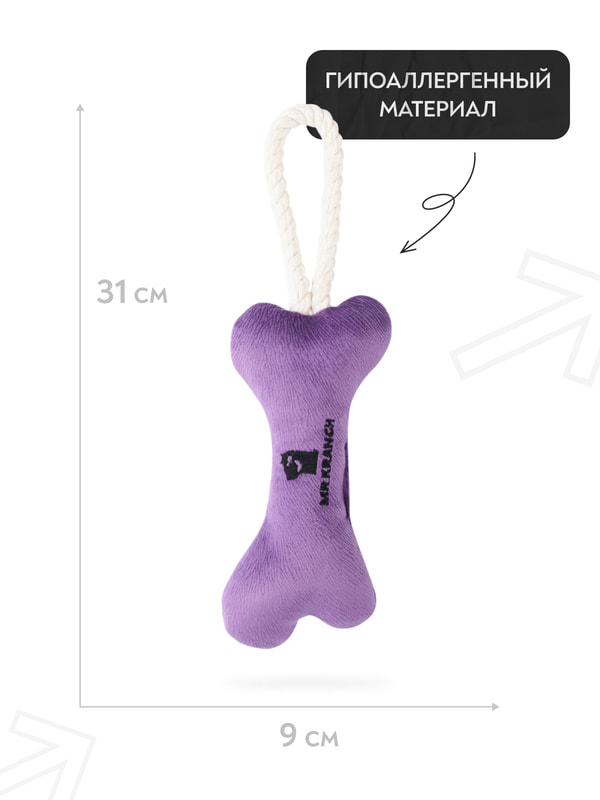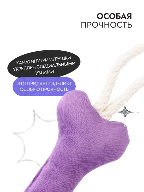 Для совместной игры Mr.Kranch Игрушка Mr.Kranch для собак мелких и средних пород Косточка с канатом 31х9х4см, фиолетовая