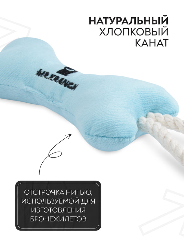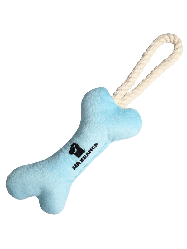 Для совместной игры Mr.Kranch Игрушка Mr.Kranch для собак мелких и средних пород Косточка с канатом 31х9х4см, нежно-голубая