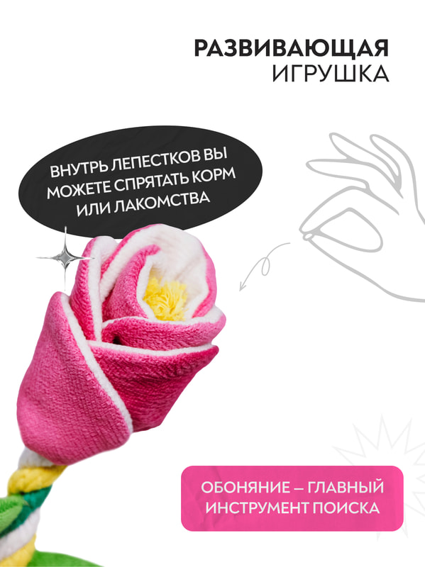Уникальное сочетание высокопрочных гипоаллергенных материалов и стильного дизайна. Для привлечения большего интереса питомца, в бутон розы можно спрятать любимые лакомства или корм.