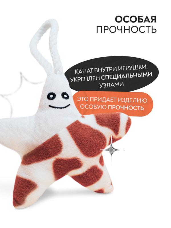 Для совместной игры Mr.Kranch Игрушка Mr.Kranch для собак мелких и средних пород Звездочка с канатом и пищалкой 26х16х5см, бежево-пятнистая