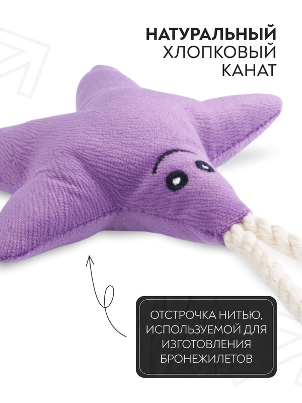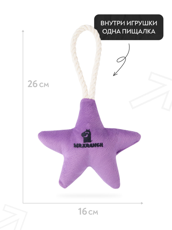 Для совместной игры Mr.Kranch Игрушка Mr.Kranch для собак мелких и средних пород Звездочка с канатом и пищалкой 26х16х5см, фиолетовая