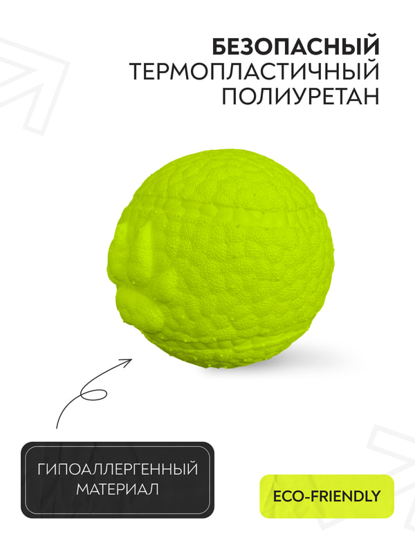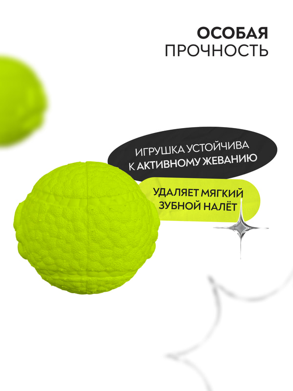 Материал мяча при прокусывании не травмирует десна питомца. Легко моется проточной водой.