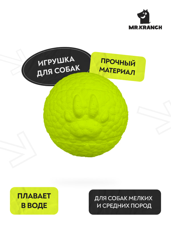 Апортировки Mr.Kranch Игрушка Mr.Kranch для собак Мяч с лапкой 8 см неоновая желтая