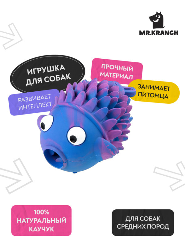Для лакомств Mr.Kranch Игрушка Mr.Kranch для собак Рыба-ёрш 12 см разноцветная не ароматизированная