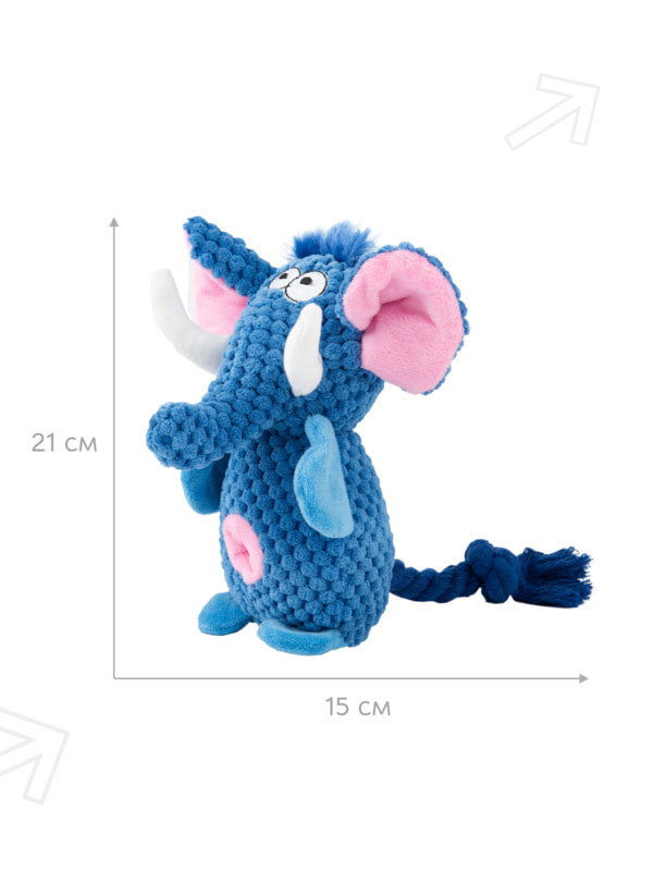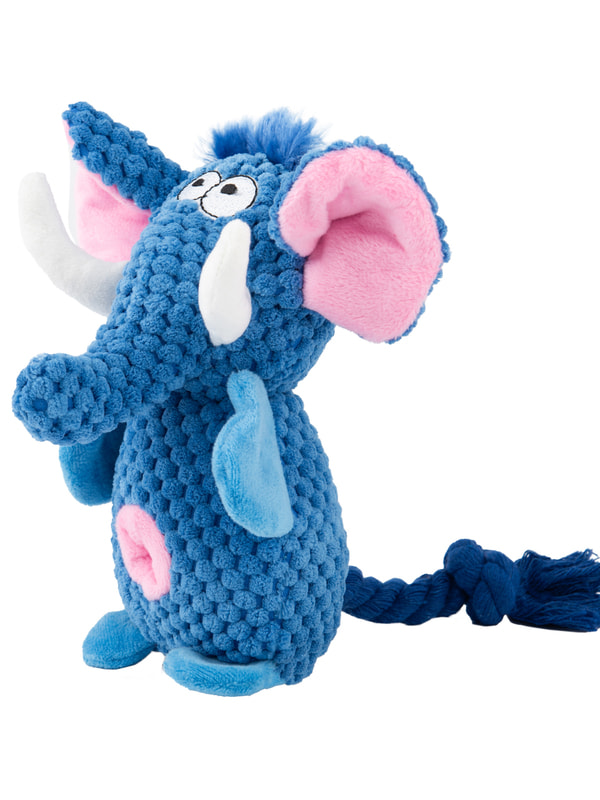 Игрушка Mr.Kranch для собак Слон плюшевая с пищалкой, шуршащими элементами, канатиком и отверстием под лакомство.