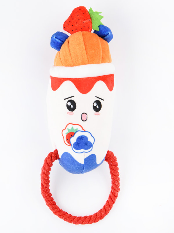Игрушка Mr.Kranch для собак "Йогурт" плюшевая с канатиком и пищалкой.