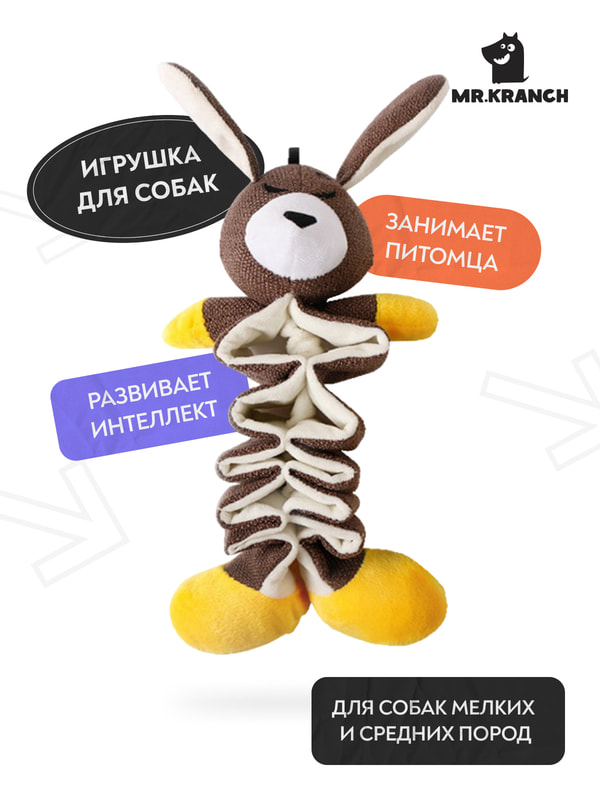 Игрушка Mr.Kranch для собак "Зайчик" с карманами под лакомство.