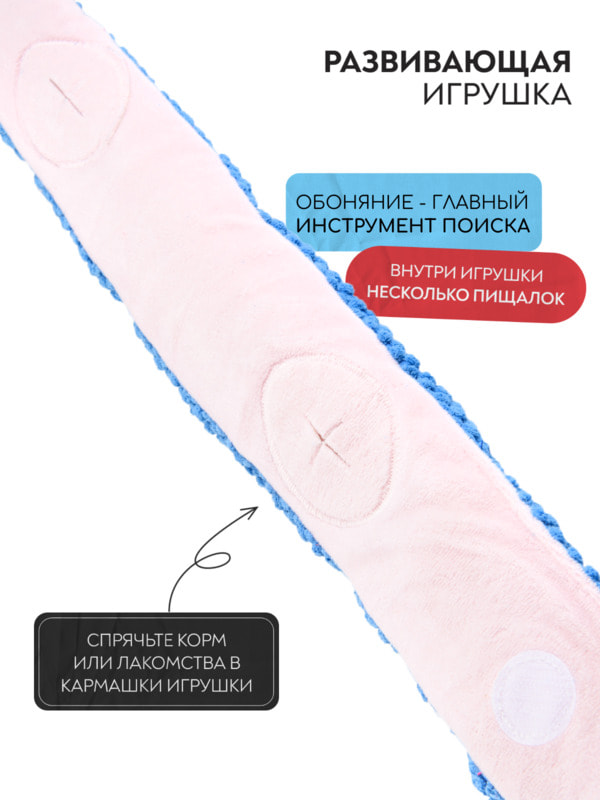 Игрушка скреплена липучками, что дополнительно стимулирует питомца к игре.