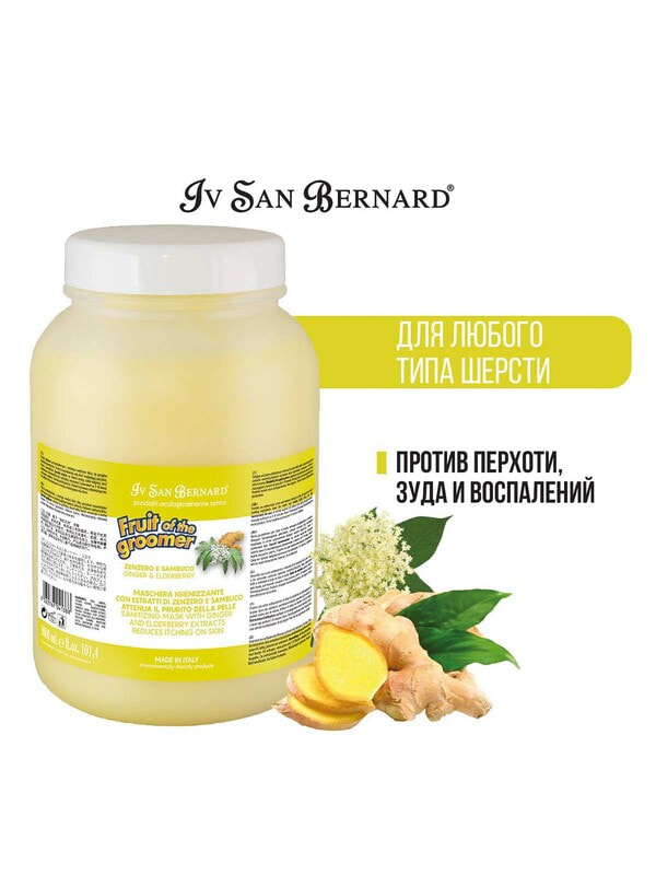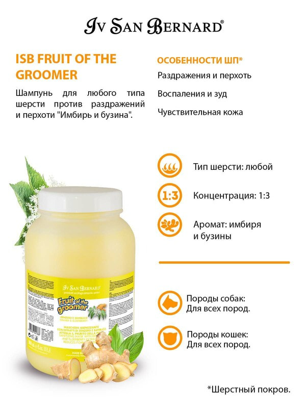 Шампунь Iv San Bernard Fruit of the Groomer Ginger&Elderbery для любого типа шерсти против раздражений и перхоти 3,25 л