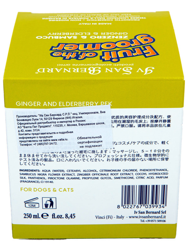 Косметика и средства по уходу Iv San Bernard ISB Fruit of the Groomer Ginger&Elderbery Восстанавливающая маска с противовоспалительным эффектом 250 мл