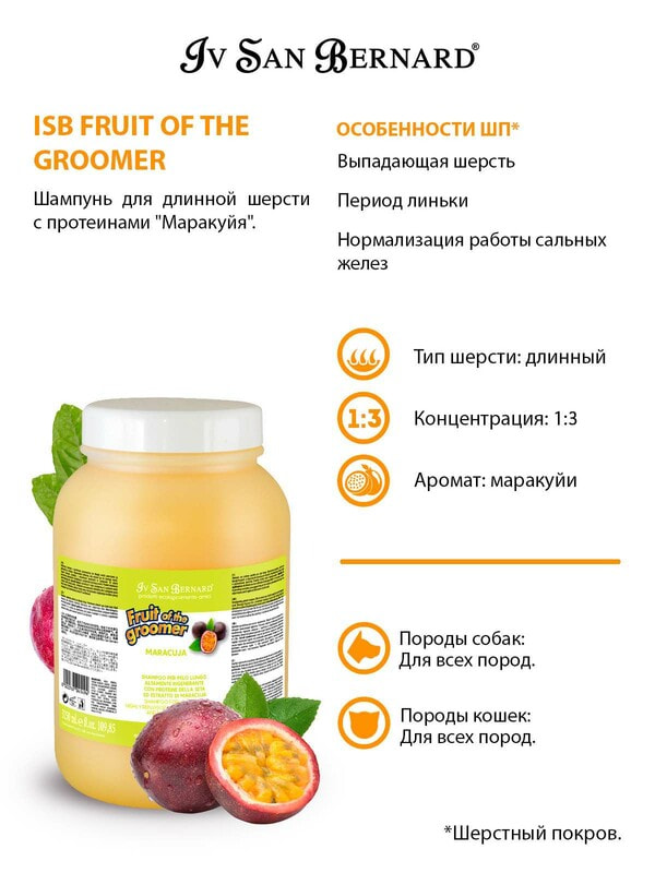 Косметика и средства по уходу Iv San Bernard ISB Fruit of the Groomer Maracuja Шампунь для длинной шерсти с протеинами 3,25 л