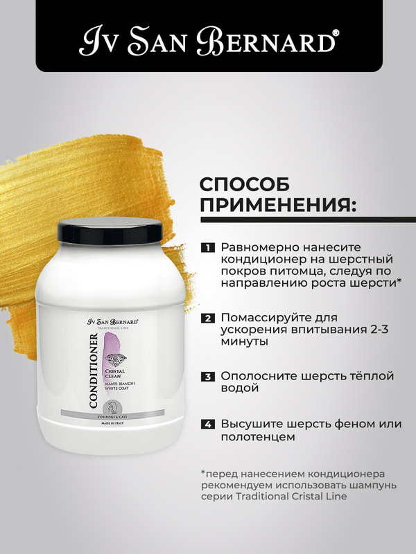 Кондиционер Iv San Bernard Traditional Line Cristal Clean для устранения желтизны шерсти 3 л
