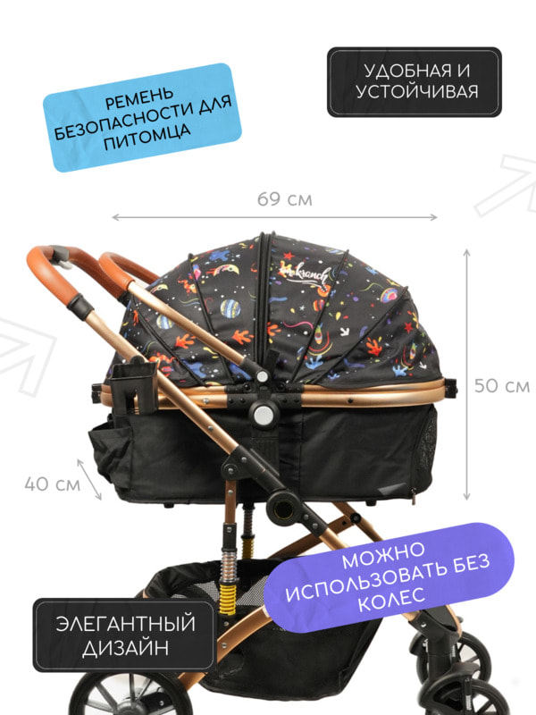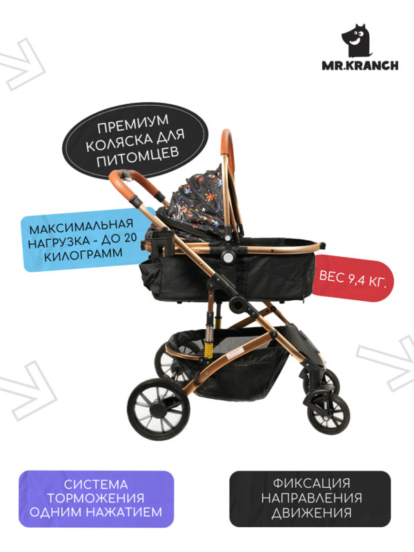 Коляски Mr.Kranch Коляска прогулочная Mr.Kranch для собак и кошек большая с амортизацией (макс. нагрузка 20 кг), разноцветная