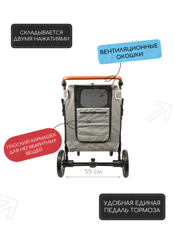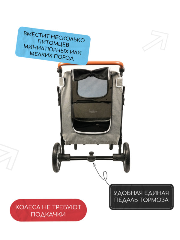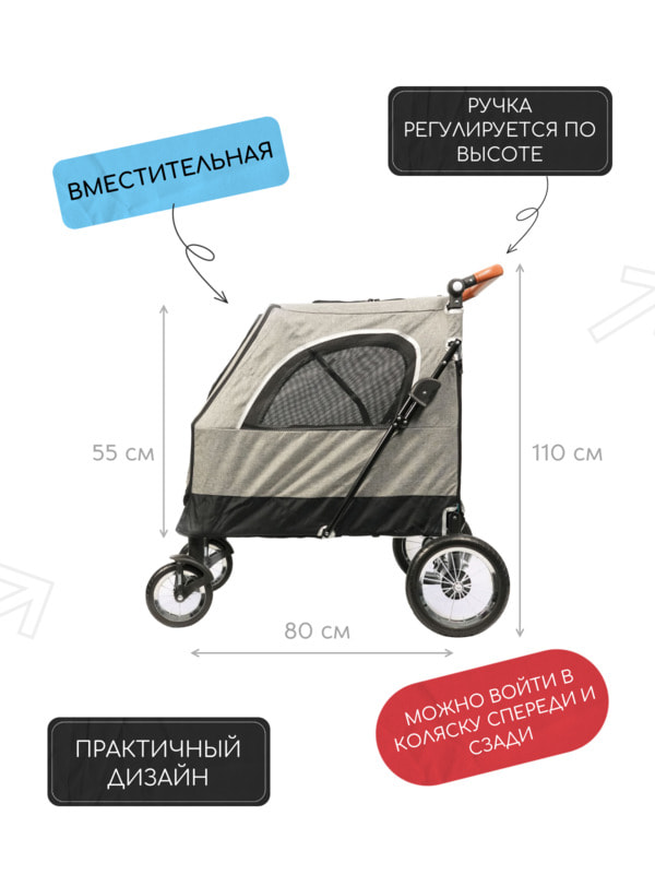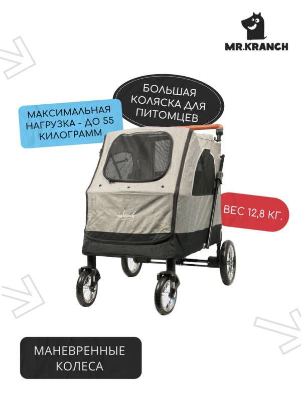 Коляски Mr.Kranch Коляска прогулочная Mr.Kranch для собак и кошек большая выставочная (макс. нагрузка 55 кг), серая