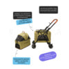 Коляска достаточно маневренная благодаря поворотному механизму на передних колесах. Самая извилистая дорожка окажется вам ни по чем. На задних колесах удобно расположена педаль для торможения в одно нажатие. На эргономичной ручке находится переключатель для быстрого складывания коляски для транспортировки. Переключатель можно задействовать одной рукой. Коляска Mr.Kranch по-настоящему многофункциональна: ей можно пользоваться по прямому назначению, также и использовать как переноску. Обе корзины отсоединяются. Так вы получите полноценные два товара в одном: одну корзину возможно оставить на шасси, а другую в постоянно отсоединенном виде использовать как переноску. Внутри предусмотрен ремень безопасности для питомца. Максимально допустимая нагрузка – 20 килограмм (10 на каждую корзину)