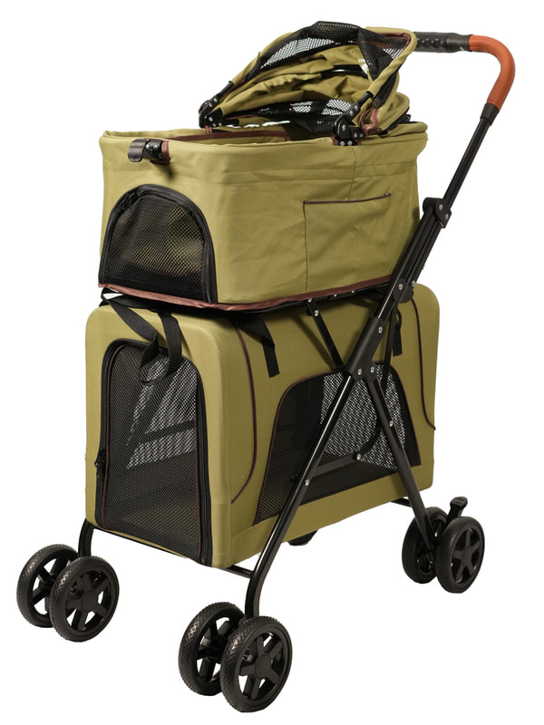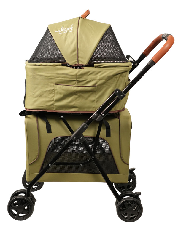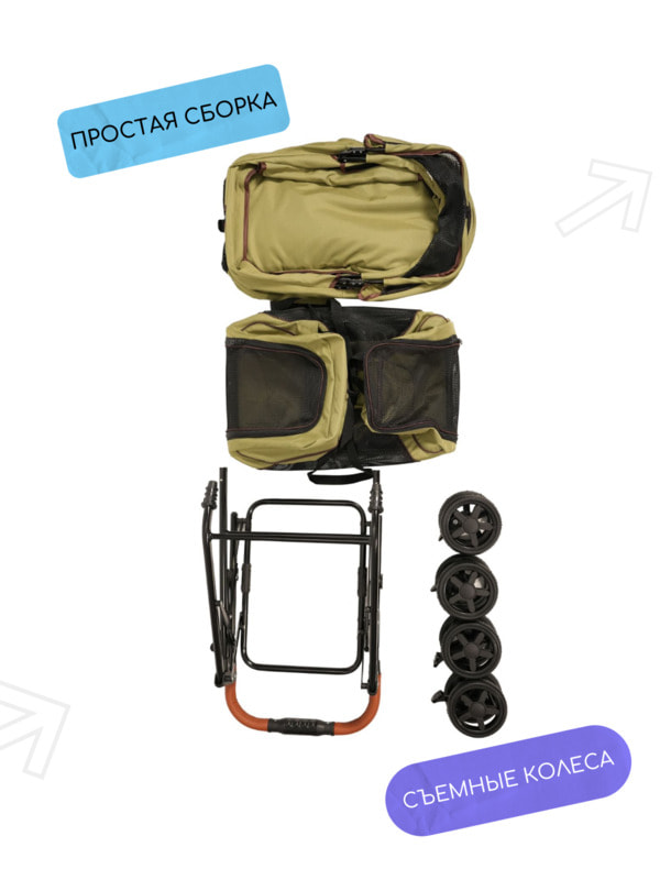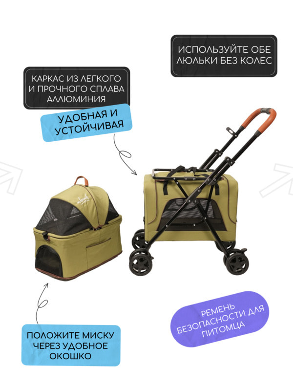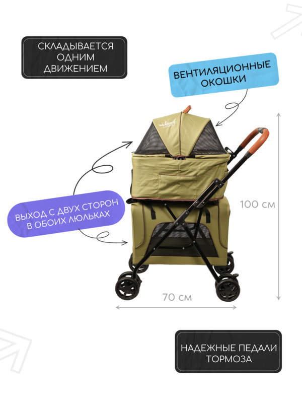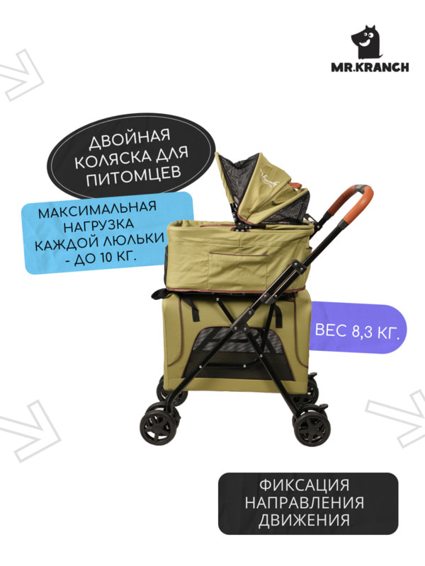 Коляски Mr.Kranch Коляска прогулочная Mr.Kranch для собак и кошек двойная (макс. нагрузка 10+10 кг), оливковая