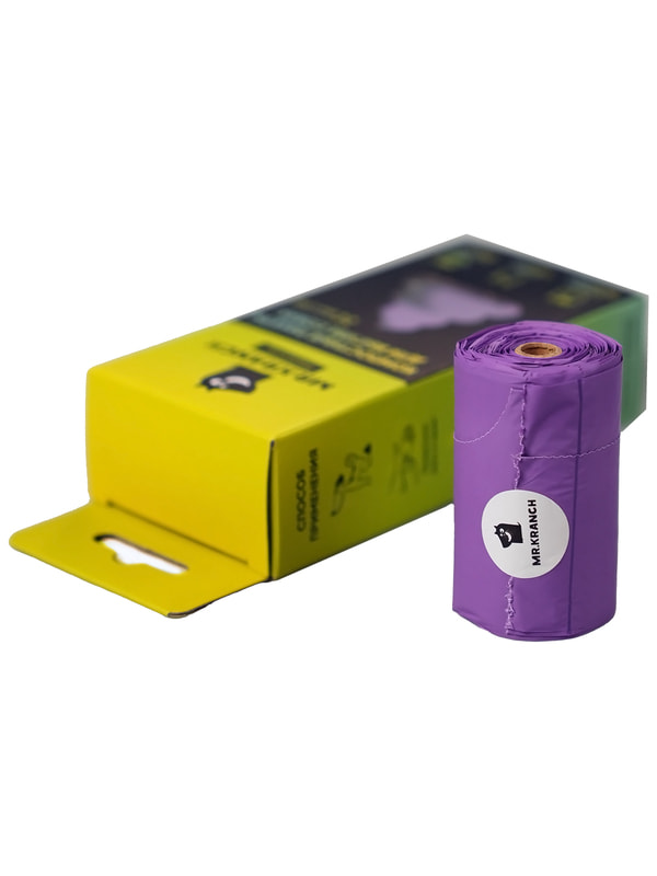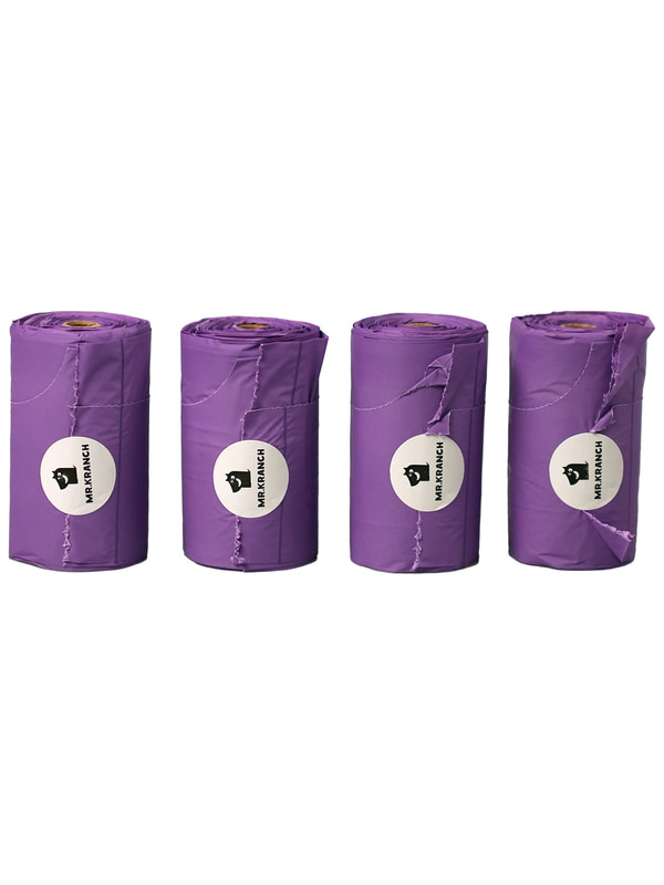 Лотки и аксессуары Mr.Kranch Компостные пакеты Mr.Kranch для выгула собак 4 рулона по 15 пакетов (22x33 см), фиолетовые