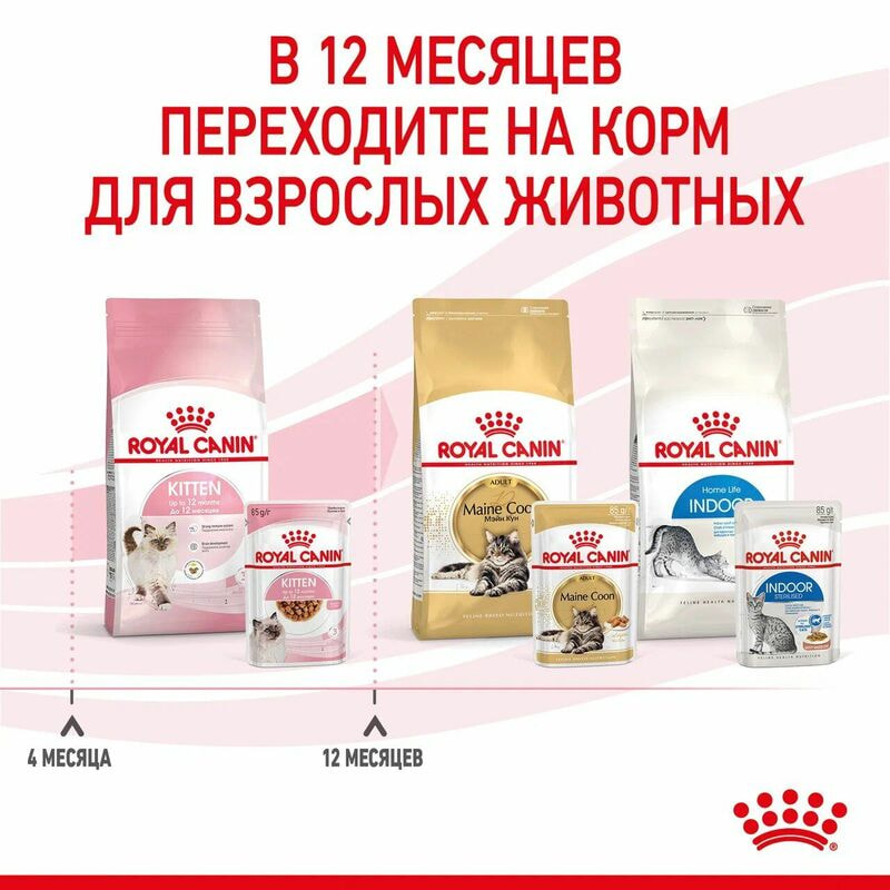 Формула рациона ROYAL CANIN® Kitten (КИТТЕН) соответствует макронутриентному профилю, инстинктивно предпочитаемому котятами во второй фазе роста и кошками в период беременности.