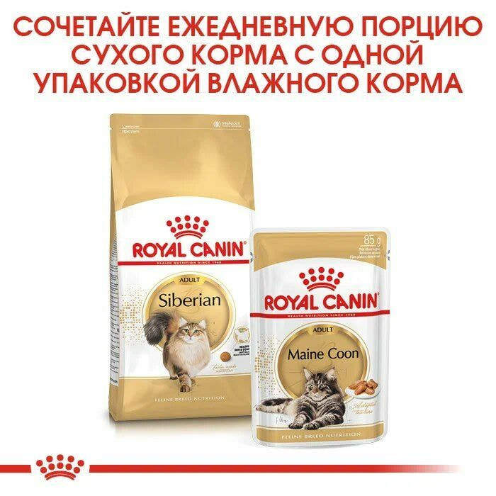 Корм сухой полнорационный для кошек - Специально для взрослых кошек сибирской породы в возрасте от 1 года и старше SIBERIAN ADULT (СИБИРСКАЯ ЭДАЛТ) ROYAL CANIN®, подходящий для кошек сибирской породы в возрасте от 1 года и старше, специально разработан с учетом потребностей вашей кошки в питательных веществах.