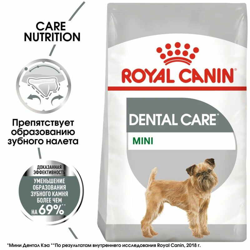 Корм сухой полнорационный для взрослых и стареющих собак мелких размеров (весом от 1 до 10 кг) в возрасте 10 месяцев и старше, предрасположенных к чувствительности зубов и десен MINI DENTAL CARE (МИНИ ДЕНТАЛ КЭА) ROYAL CANIN®, подходящий для собак мелких размеров с повышенной чувствительностью зубов в возрасте от 10 месяцев до 8 лет, специально разработан с учетом потребностей вашей собаки в питательных веществах.