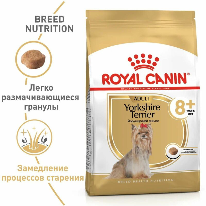 Сухие корма Royal Canin Корм для собак Royal Canin Yorkshire Terrier 8+ сухой для стареющих собак породы Йоркширский Терьер от 8 лет, 2 шт по 500 г