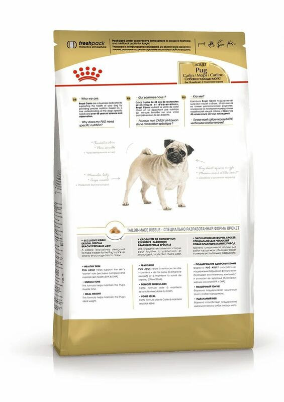 Корм сухой полнорационный для собак - Специально для взрослых собак породы мопс в возрасте 10 месяцев и старше PUG ADULT (МОПС ЭДАЛТ) ROYAL CANIN®, подходящий для собак породы мопс в возрасте от 10 месяцев, специально разработан с учетом потребностей вашей собаки в питательных веществах.