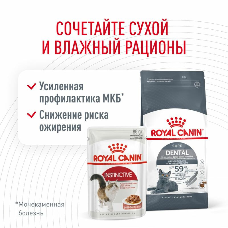 Также ROYAL CANIN® Dental Care (ДЕНТАЛ КЭА) способствует профилактике заболеваний мочевыделительной системы за счет сбалансированного за счет сбалансированного содержания минералов и поддержания рН мочи.