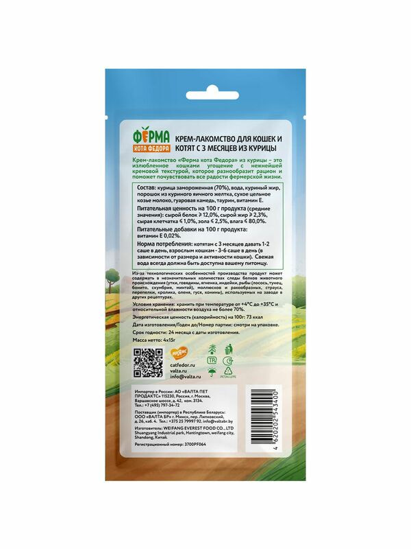 Повседневные Ферма кота Фёдора Крем-лакомство Ферма кота Федора для кошек и котят из курицы 4 шт х 15 г
