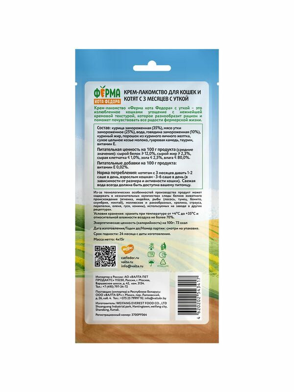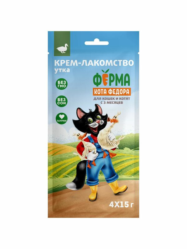 Повседневные Ферма кота Фёдора Крем-лакомство Ферма кота Федора для кошек и котят с уткой 4 шт х 15 г